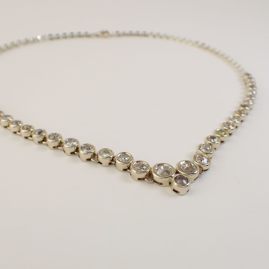 Van armband tot collier, witgoud met zilver, diamant antiek slijpsel